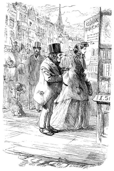 Marcus Stone, illus. from Our Mutual Friend (Mr. Boffin in search of books about misers)